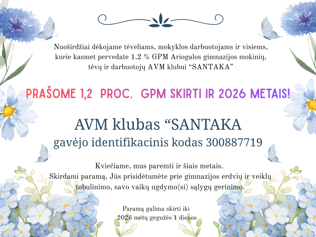 - 2019 m. pakeistas gyventojų pajamų mokesčio (GPM) tarifas, todėl pasikeitė ir gyventojų paramai skiriamos GPM dalys - galima skirti 1,2 %
