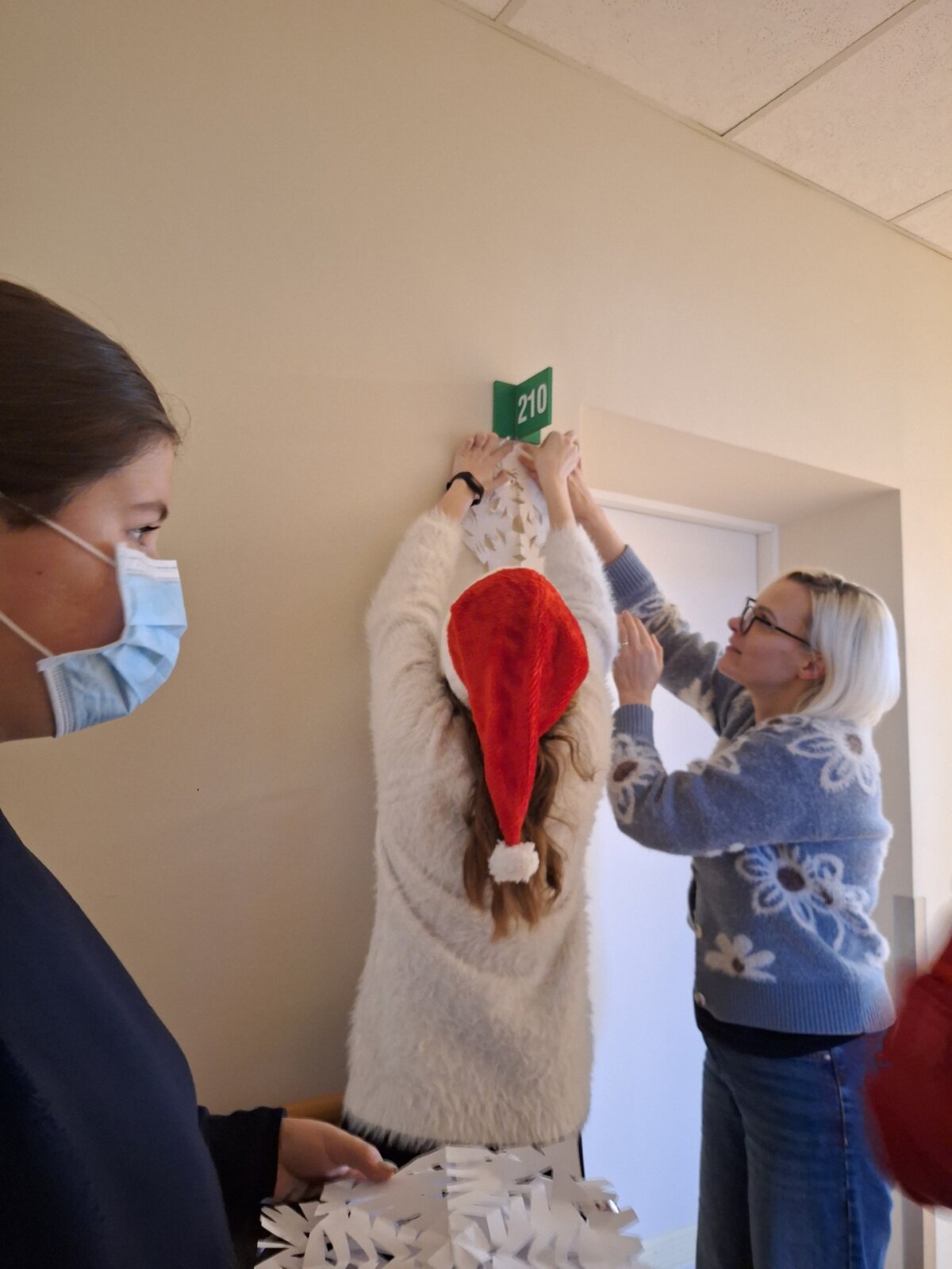 Šventine nuotaika, nuoširdumu, atjauta, sveikinimo žodžiais mokinės pasidalino su ligoninės pacientais bei personalu. Mergaitės pačių iškarpytomis snaigėmis papuošė palatų duris. Padovanojo mokytojos Neringos Yetkin vadovaujamo neformaliojo švietimo būrelio „Kūrybinės dirbtuvės“ mokinių sukurtą puikią kalėdinę eglutę, kuri nuo šiandien džiugins ligoninės darbuotojus ir sergančiuosius. Mergaitės visus vaišino Ugnės Radvilaitės su mama iškeptu obuoliais kvepiančiu pyragu.
