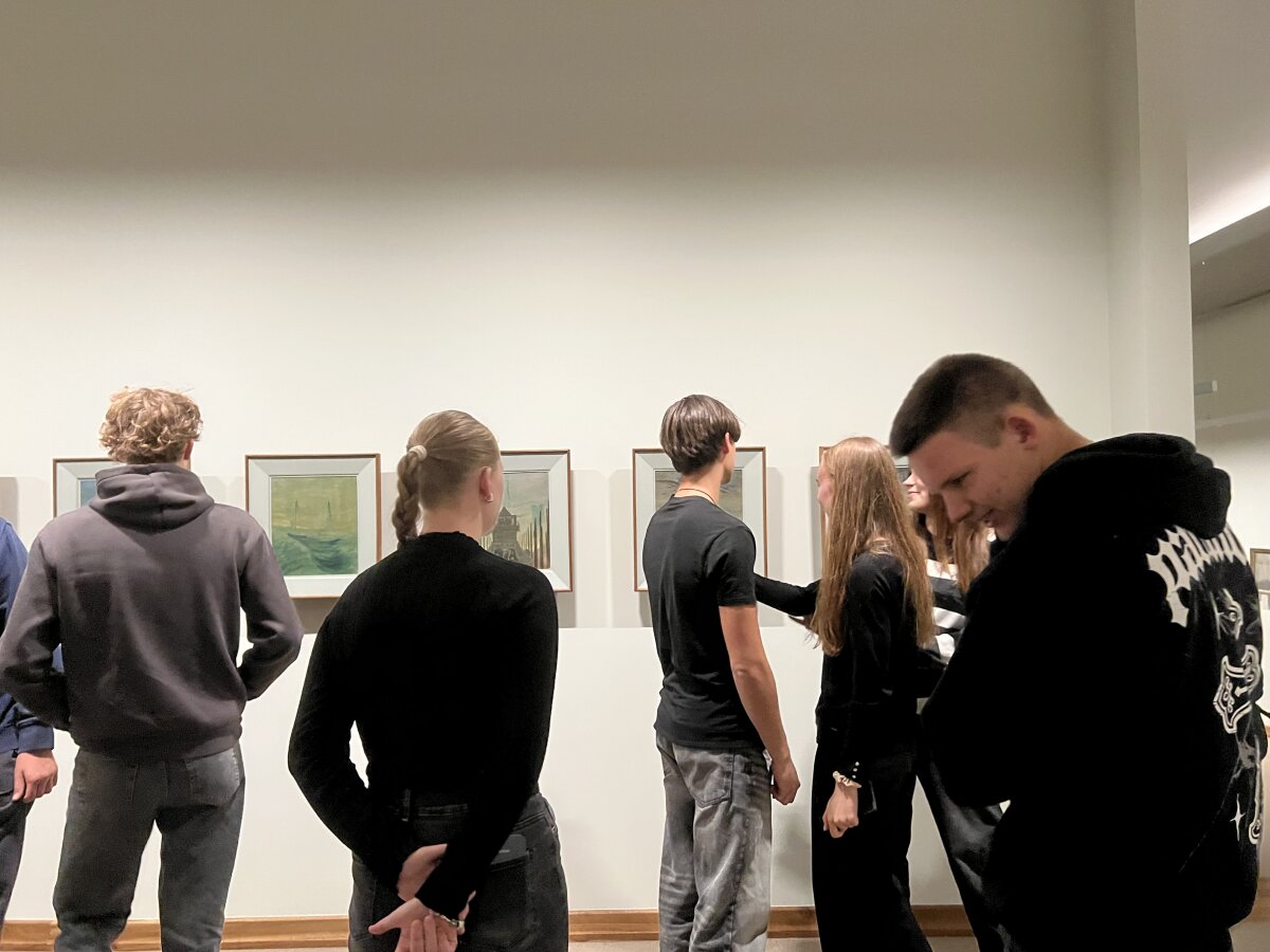Po VR seanso leidomės į Čiurlionio paveikslų galeriją. Ten susipažinome su šio garsaus lietuvių dailininko darbais — tiek su abstrakčiomis vizijomis, tiek su jo realistinės tapybos kūriniais. Muziejuje eksponuojama nemaža dalis Čiurlionio kūrybos.