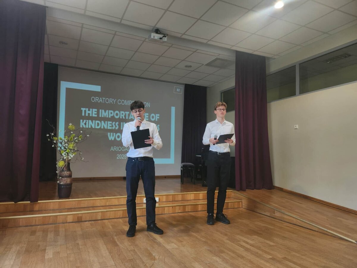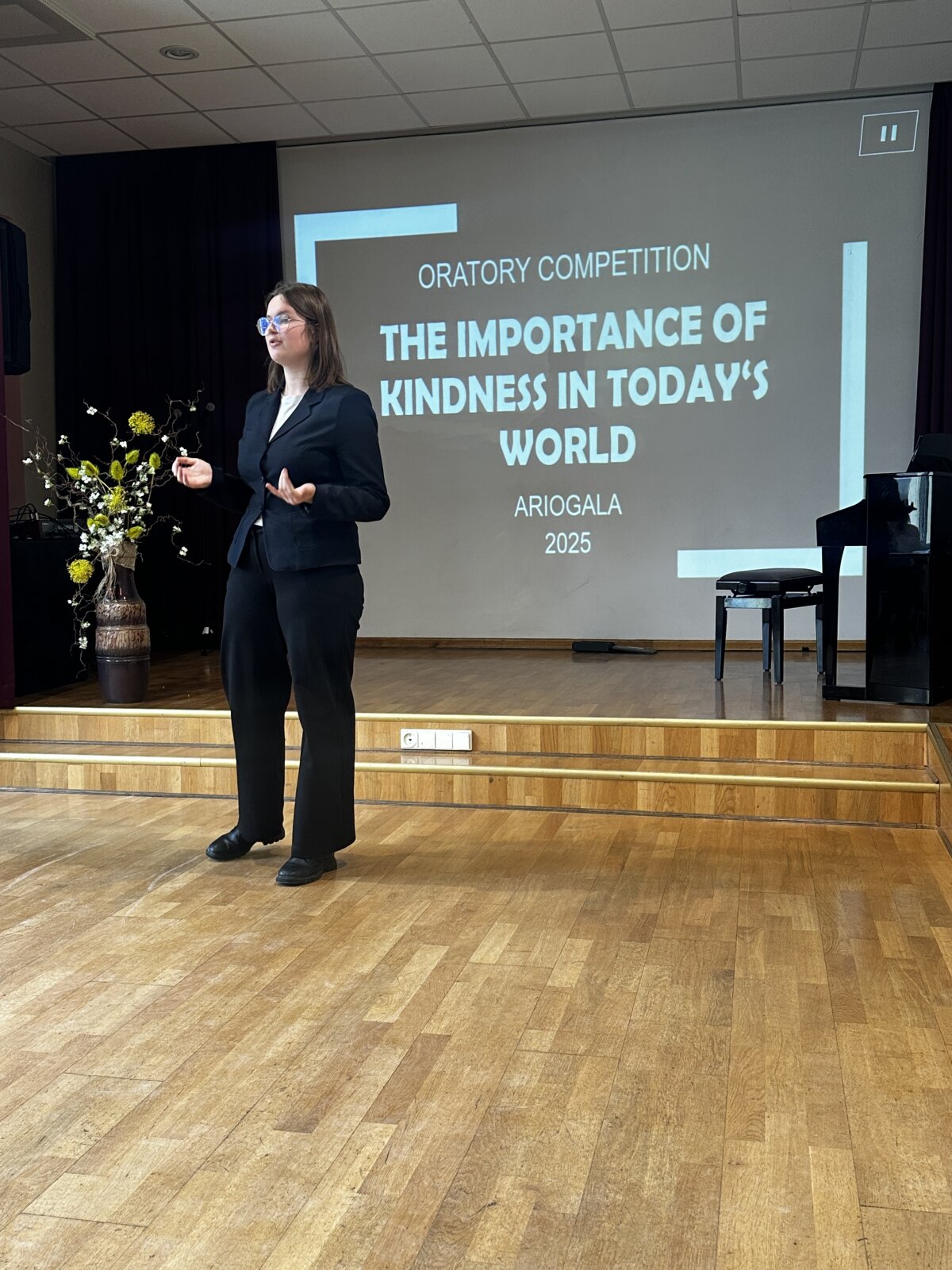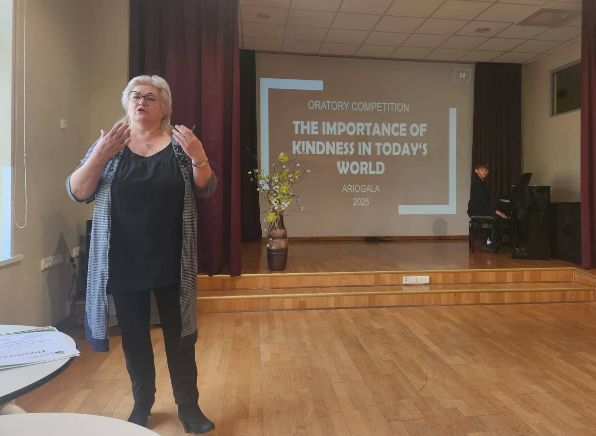 2025 m. lapkričio 20 d. Ariogalos gimnazijoje vyko rajoninis anglų k. oratorių konkursas "The importance of kindness in today's world". Renginį organizavo anglų kalbos mokytojos Dalia Skeberdienė ir Gintarė Preikšienė. Į gimnaziją atvyko Viduklės gimnazijos ir Šaltinio progimnazijos mokiniai. Iš viso konkurse dalyvavo 9 oratoriai.