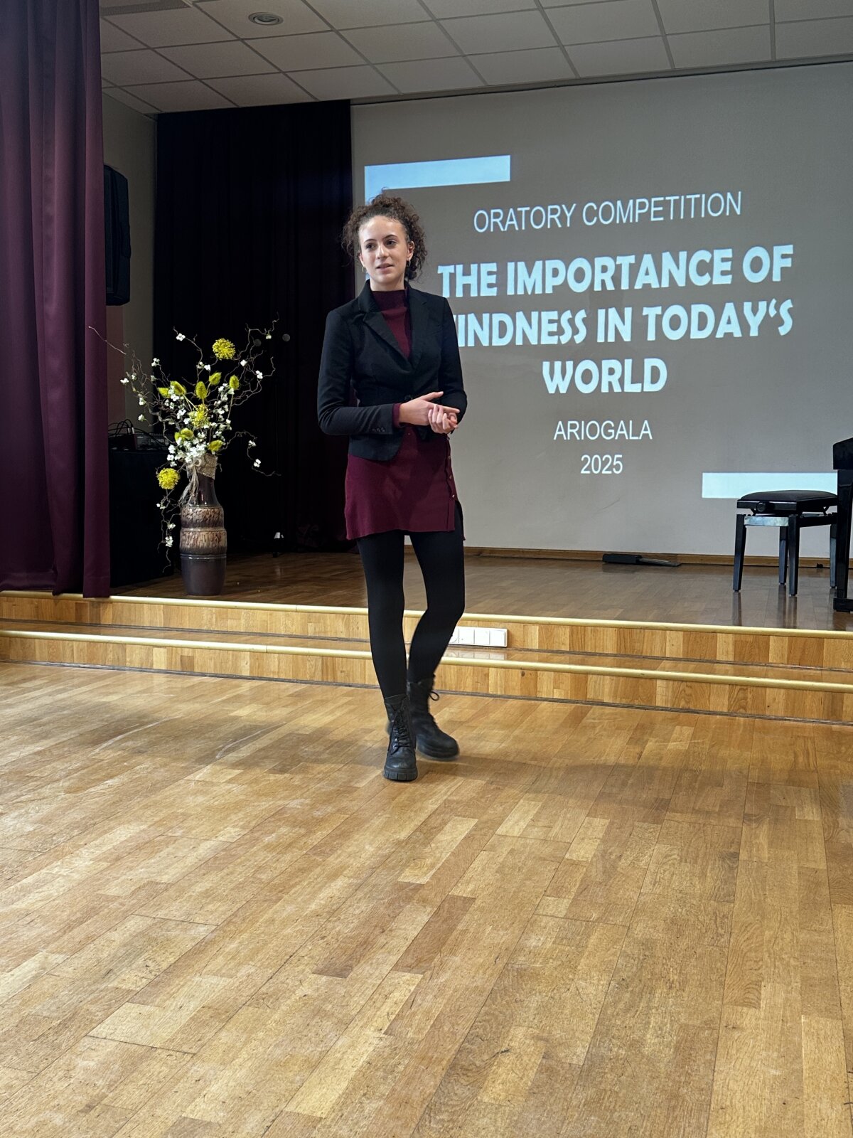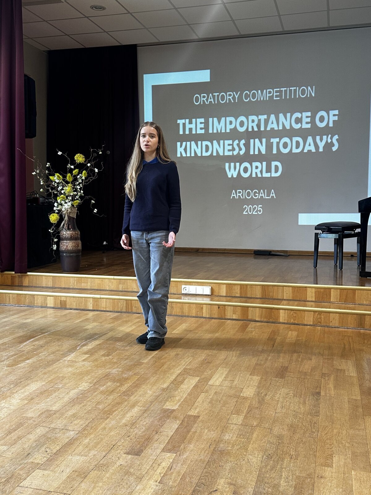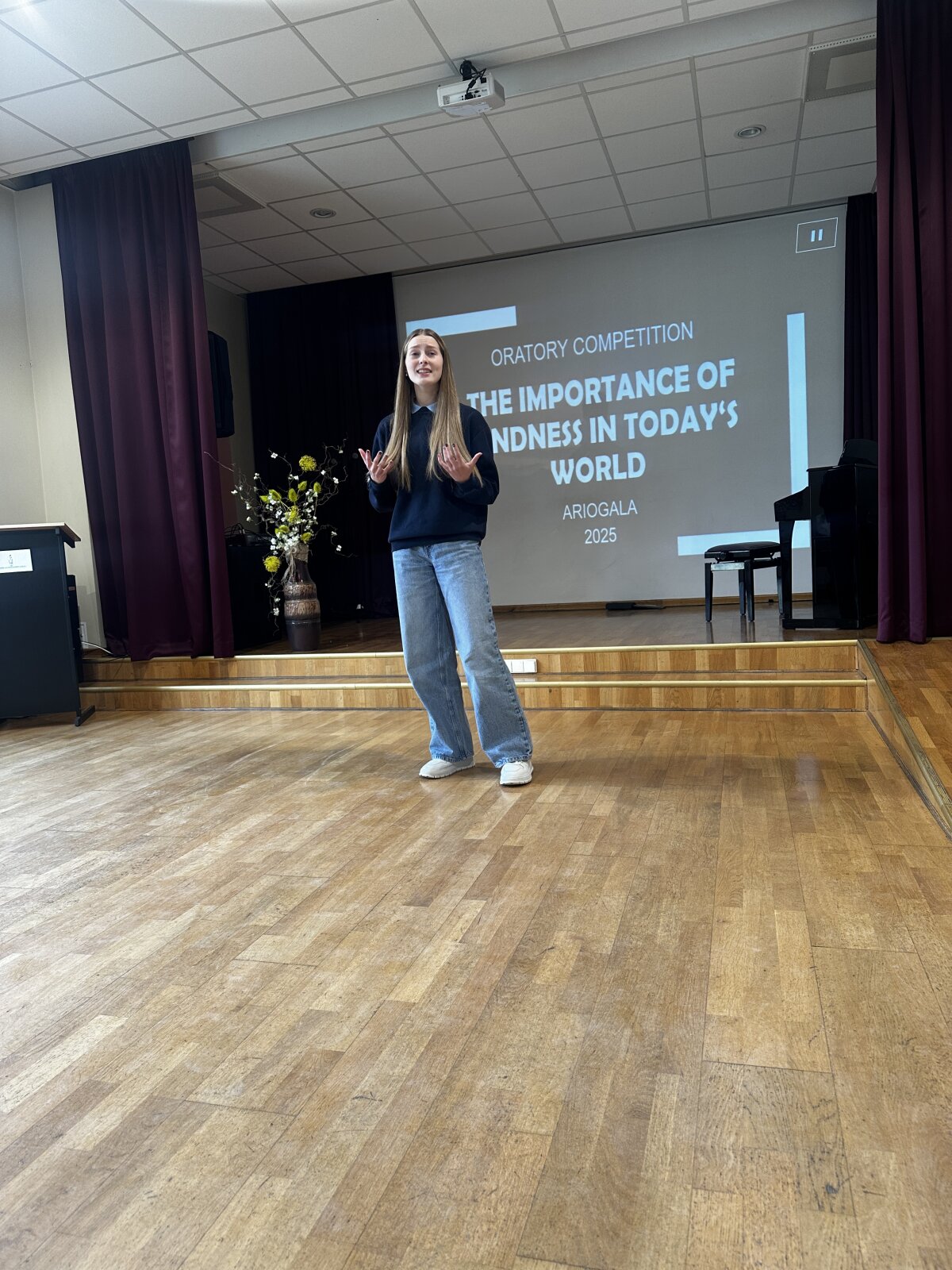 2025 m. lapkričio 20 d. Ariogalos gimnazijoje vyko rajoninis anglų k. oratorių konkursas "The importance of kindness in today's world". Renginį organizavo anglų kalbos mokytojos Dalia Skeberdienė ir Gintarė Preikšienė. Į gimnaziją atvyko Viduklės gimnazijos ir Šaltinio progimnazijos mokiniai. Iš viso konkurse dalyvavo 9 oratoriai.