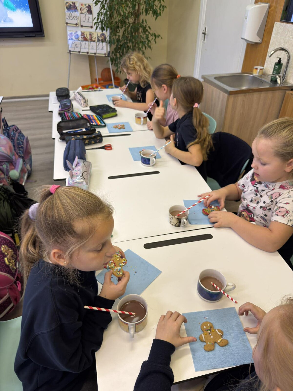 Mažieji ir didieji kartu piešė, dainavo, dekoravo abiturientės Emilijos keptus meduolius, o galiausiai visi susėdo išgerti šiltos kakavos. ☕