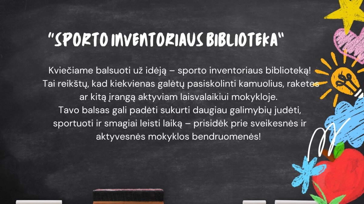 3. “Sporto inventoriaus biblioteka” (8 b klasė) - sporto ir laisvalaikio prekių įsigijimas;