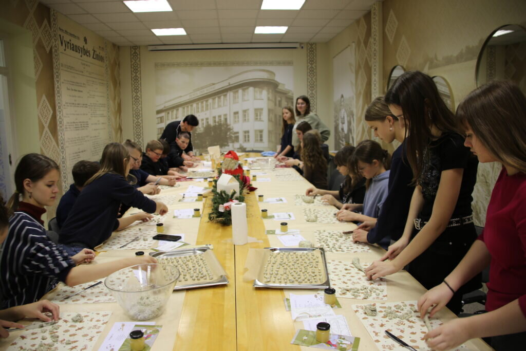 Vykdant etninės kultūros projektą ,,Po tėviškės dangum“ Lietuvos Respublikos Žemės ūkio rūmuose Kaune tautinio paveldo edukacijose/degustacijose 2025 lapkričio 12 d. dalyvavo 19 Ariogalos gimnazijos 7-8 klasių mokinių. Lietuvių tautinio kulinarinio paveldo pažinimo edukaciją vedė ŽŪR edukatorė Gintarė Naskauskė, kuri išmokė kepti tradicinius kūčiukus, įtraukė mokinus į puikias veiklas. Kita edukacija – tautinių juostų rišimas, kurią vykdė tradicinių amatų meistrė Vilija Ratautienė, buvo taip pat buvo unikali. Mokiniai dalyvavo užsiėmimuose, pynė spalvotas juostas, mokėsi derinti raštus ir kt.