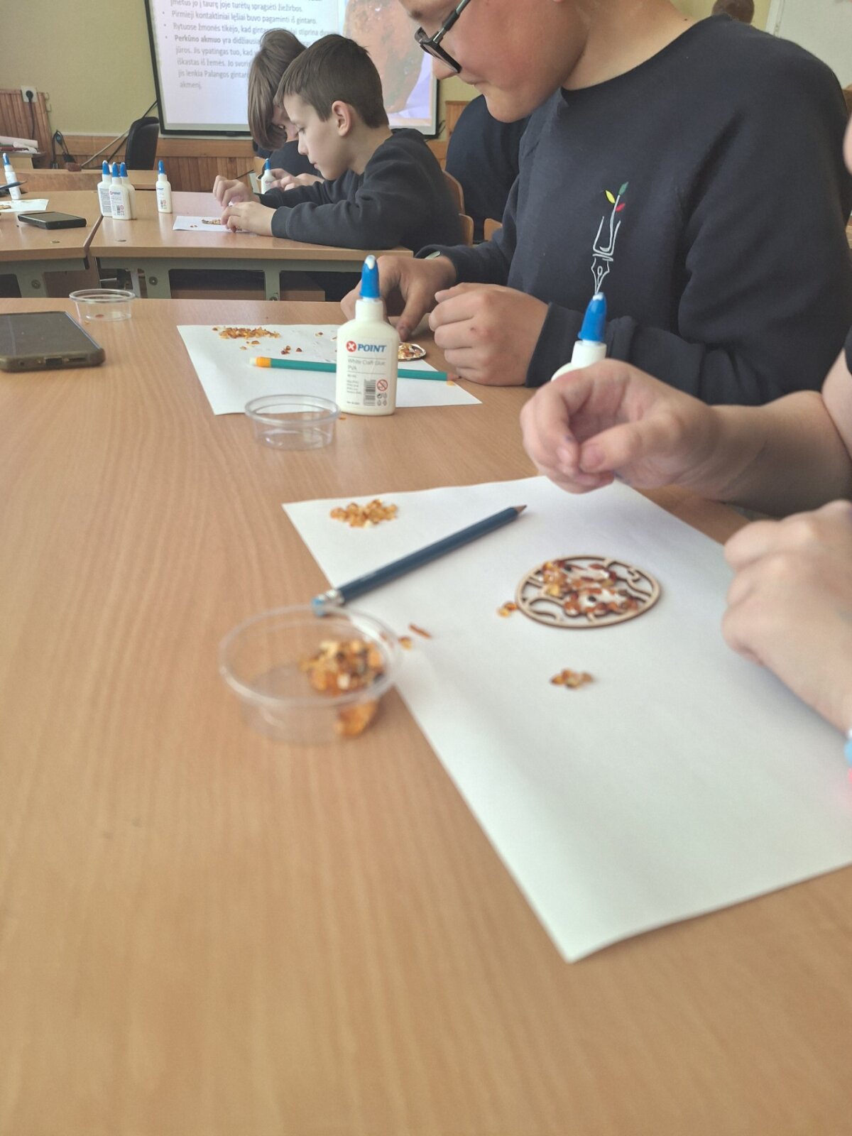 Velykos – tai pavasario atgimimo šventė, kuomet gamta bunda naujam gyvenimui, o oras prisipildo gaivumo ir šviesos. Vieni iš gražiausių Velykų simbolių – margučiai, kuriuos su meile puošia visa šeima. Artėjančių didžiųjų pavasario švenčių laukime balandžio 17 – 18 dienomis Ariogalos gimnazijos pradinėse klasėse lankėsi MB „Gintarinė širdis“ edukatorė, kuri edukacijos dalyvius kvietė ne tik sužinoti apie Baltijos gintarą, dar vadinamą Lietuvos auksu, bet ir sukurti savo Velykų margutį. Pristačiusi teorinę medžiagą edukatorė mokinius pakvietė atlikti kūrybinį darbelį. Daromas kūrybinis darbas nebuvo labai sudėtingas, tačiau mokinius labai sužavėjo, jie galėjo susikurti savo autentišką margutį, panaudodami įvairių atspalvių ir formų gintaro gabalėlius, kuriuos klijavo j ant JAU paruoštų medinių trafaretų. Atlikdami šiuos darbeliu mokiniai stiprino įvairias savo kompetencijas, o sukurti darbeliai pradžiugino ne tik juos, bet ir namiškius.