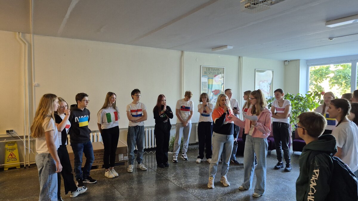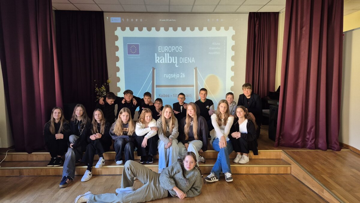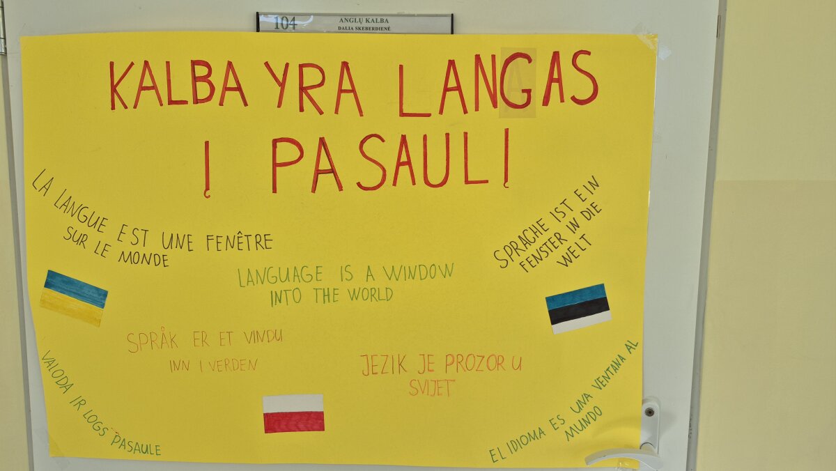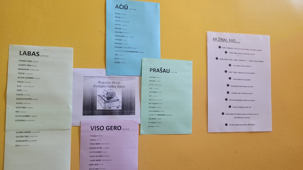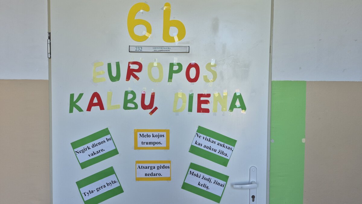 Mūsų gimnazijoje ši ypatinga diena taip pat buvo paminėta linksmai ir kūrybiškai. Klasių valandėlėse bei kalbų pamokose vyko veiklos, skirtos įvairioms Europos kalboms. Visą dieną mokiniai ir mokytojai sveikinosi skirtingomis kalbomis – nuo vokiško „Guten Tag“ iki itališko „Ciao“. Kalbų kabinetai pasipuošė spalvingomis dekoracijomis, primenančiomis, kad kalbų pasaulis yra be galo platus ir įdomus.