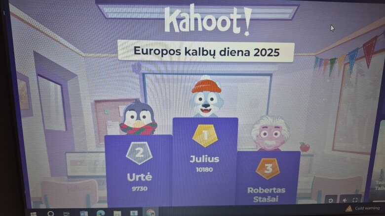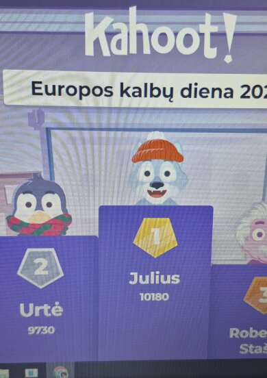 Vėliau visi pasitikrino žinias dalyvaudami azartiškoje „Kahoot“ viktorinoje apie Europos kalbas. Tuo tarpu 5 b klasė turėjo galimybę išbandyti interaktyvų žaidimą, kuriame reikėjo greitos reakcijos ir kalbinių įgūdžių. Šis žaidimas sukėlė daug emocijų, azarto ir smagaus varžymosi.