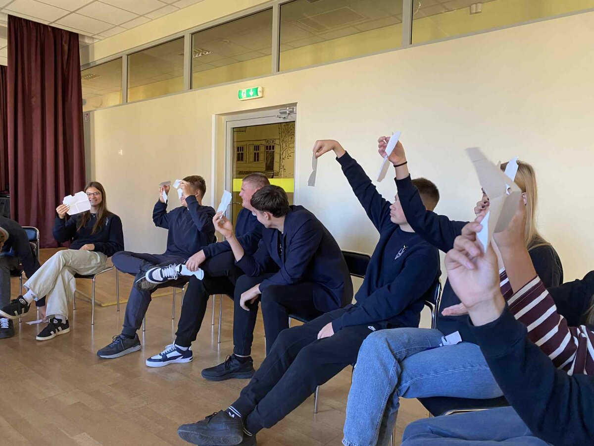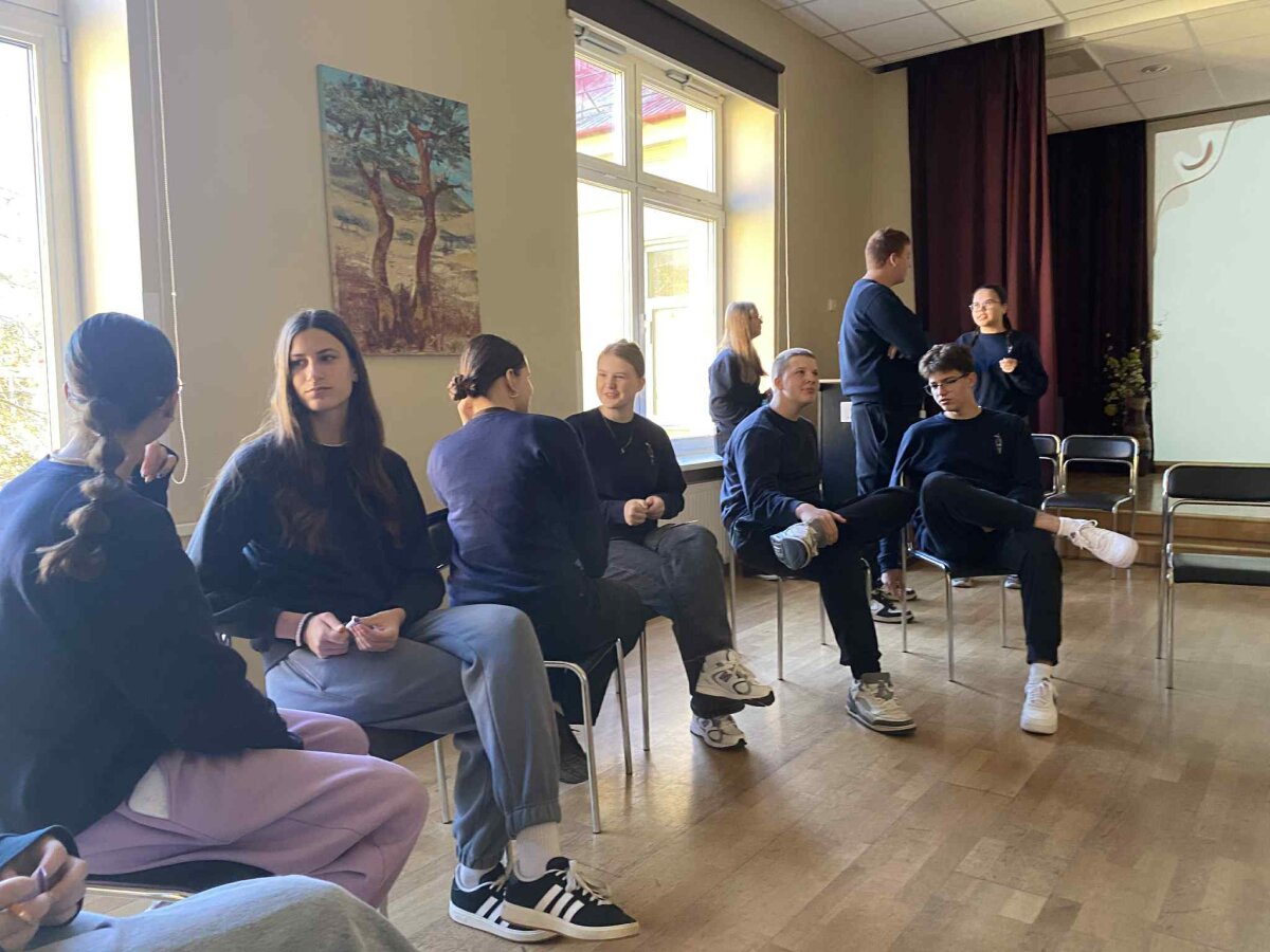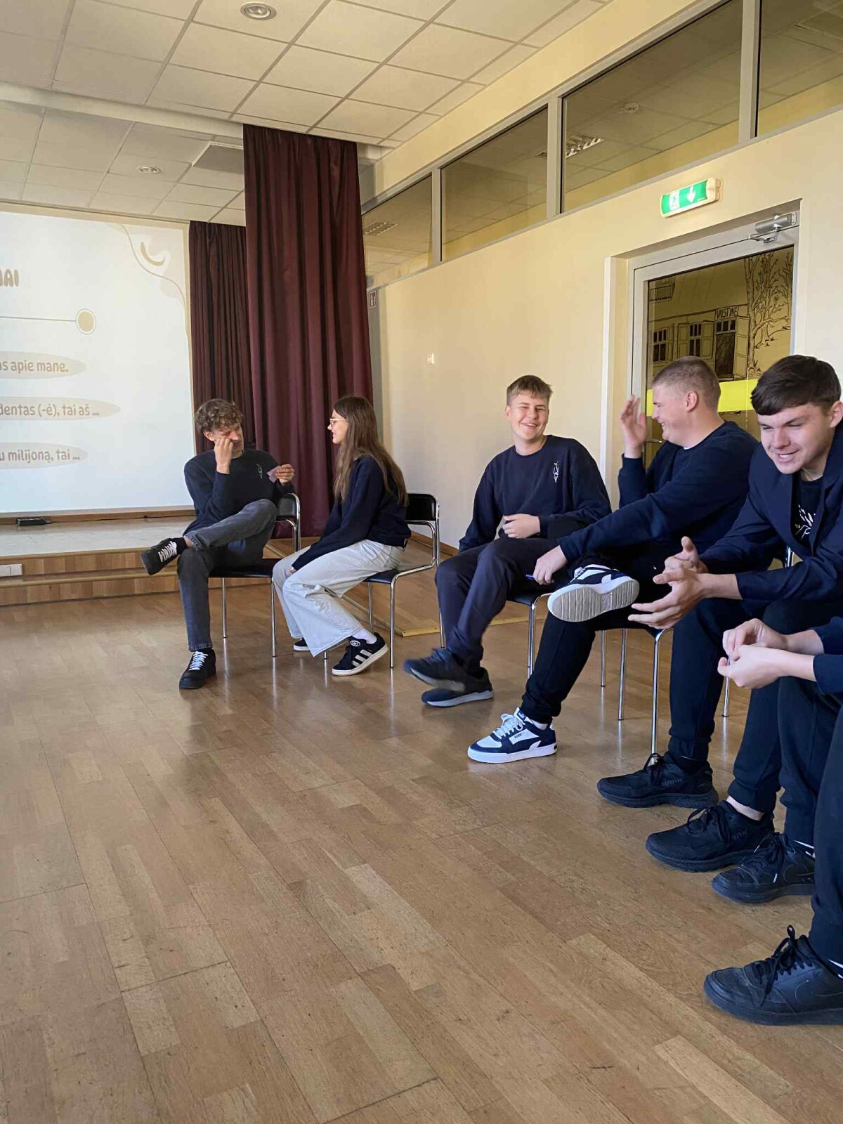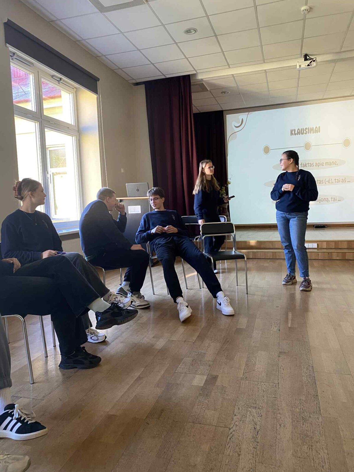 Ketvirtadienį II a g klasėje vyko klasės valandėlė tema „Aš ir kiti – kelionė į savęs ir kitų pažinimą“. Užsiėmimą vedė klasės mokinės Dovilė ir Ineta. Mokinės dalyvavo mokymuose „Karjera, studijos, profesija – ateities mokytojo misija ir vizija“, o dalį praktinių užduočių pritaikė ir savo klasei. Veiklų metu buvo siekiama geriau pažinti save, draugus ir sustiprinti tarpusavio ryšius.