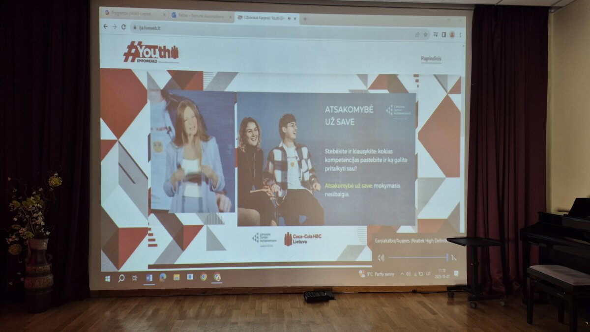 Spalio 7 dieną mūsų gimnazijos II–IV klasių mokiniai dalyvavo tarptautinės edukacinės programos „Youth Empowered“ metiniame renginyje „Užsikrauk karjerai!“. Prie virtualaus renginio prisijungė net 57 mūsų gimnazistai, o visoje Lietuvoje – daugiau nei 10 000 jaunų žmonių.