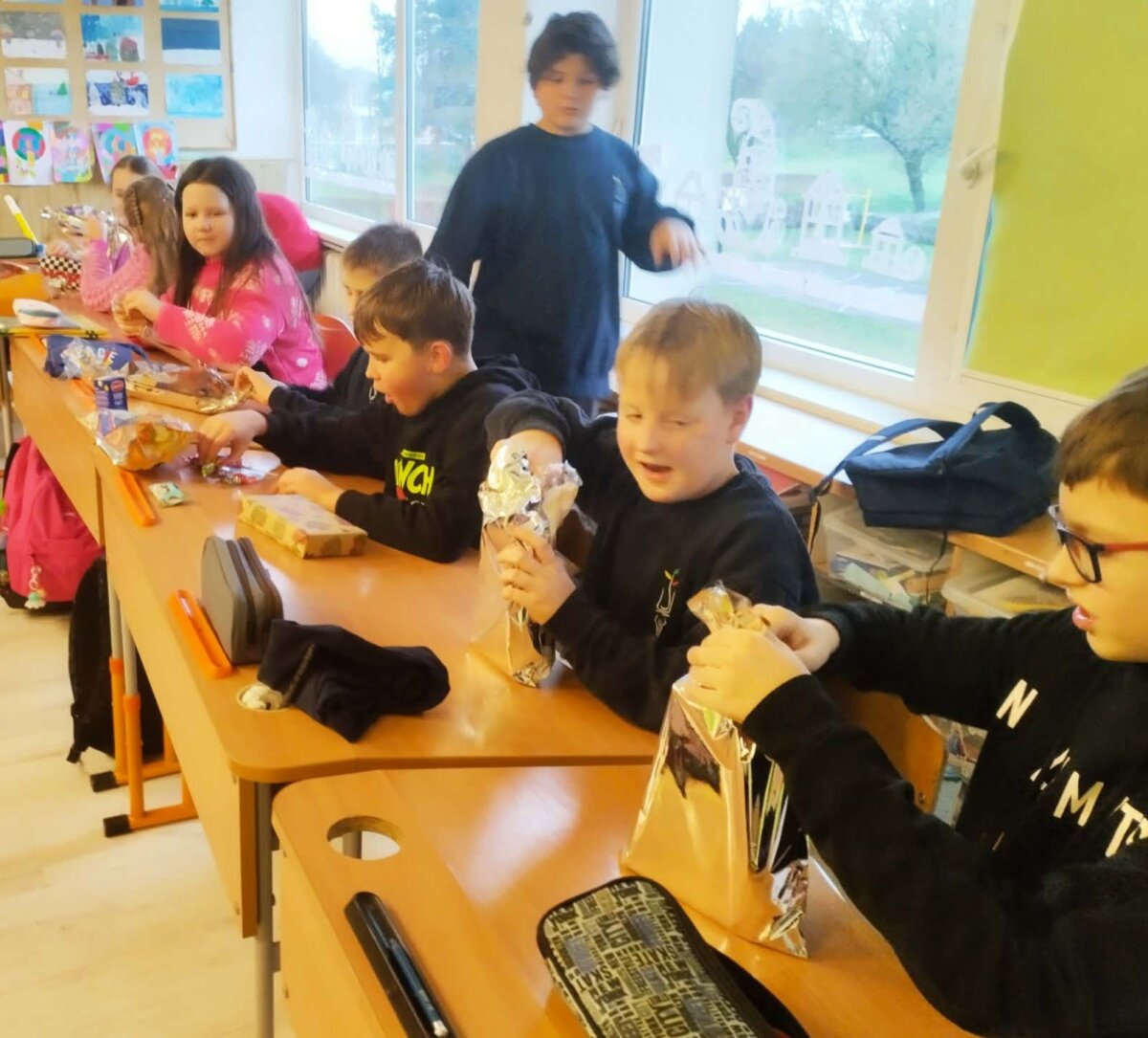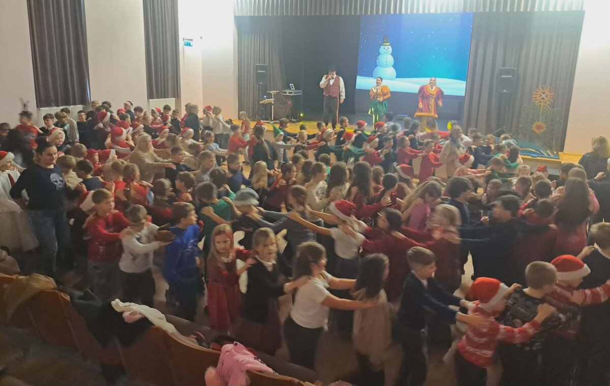 Atlikėjai dovanojo nuotaikingas, vaikams skirtas daineles ir įtraukė mokyklos pradinių klasių bendruomenę į smagias veiklas. Visos klasės aktyviai dalyvavo programoje: vieniems teko dainuoti kartu, kitiems – kartoti linksmus judesius, o dar kitiems – šokti ir džiaugtis šventiniu ritmu. Šoko, dainavo ir kartu su mokiniais šypsojosi ir džiaugėsi jų mokytojos.
