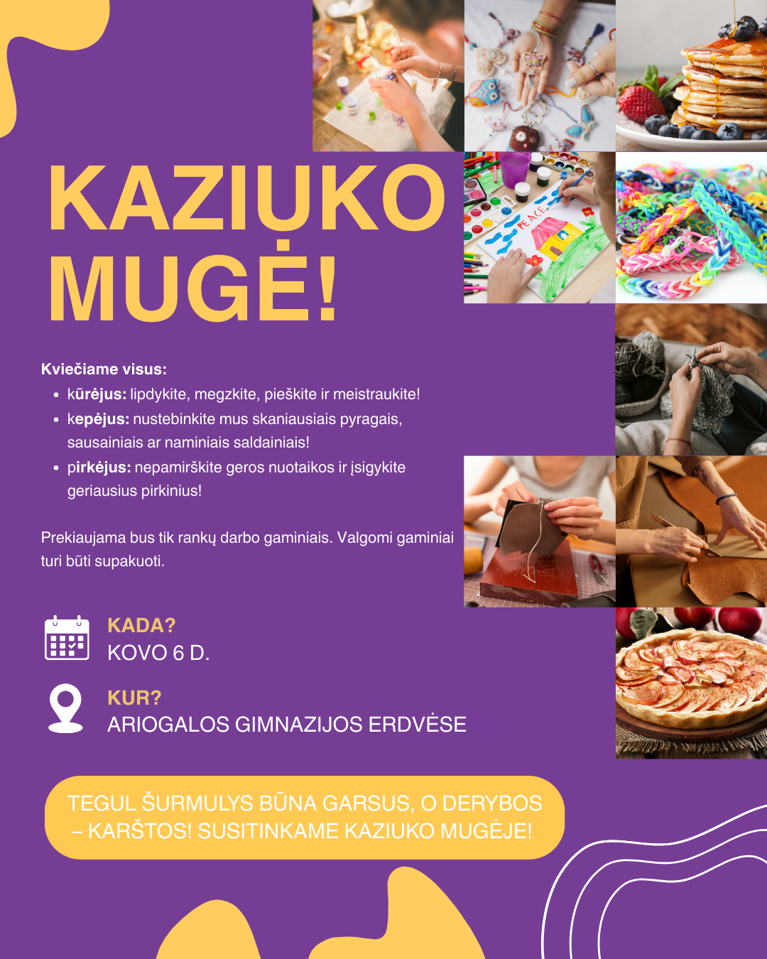 Prekiaujama bus tik rankų darbo gaminiais. Valgomi gaminiai turi būti supakuoti.