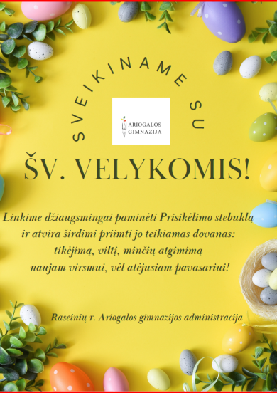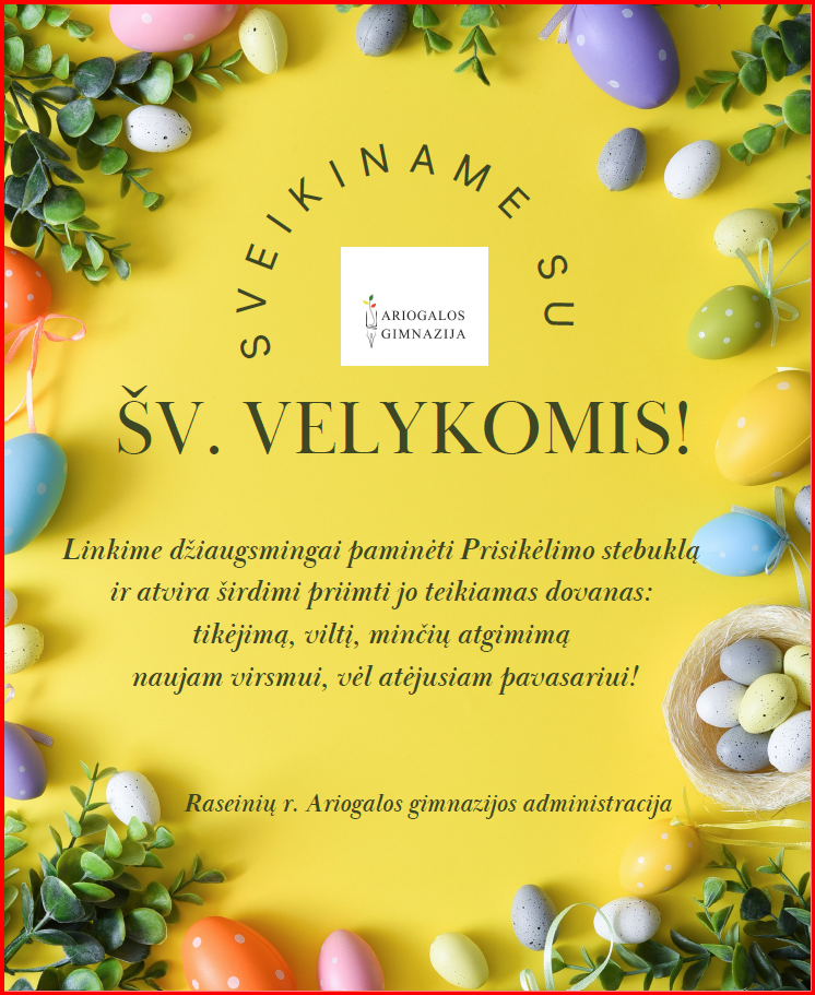 Brangi Ariogalos gimnazijos bendruomene, nuoširdžiai sveikiname Jus su Vasa... -