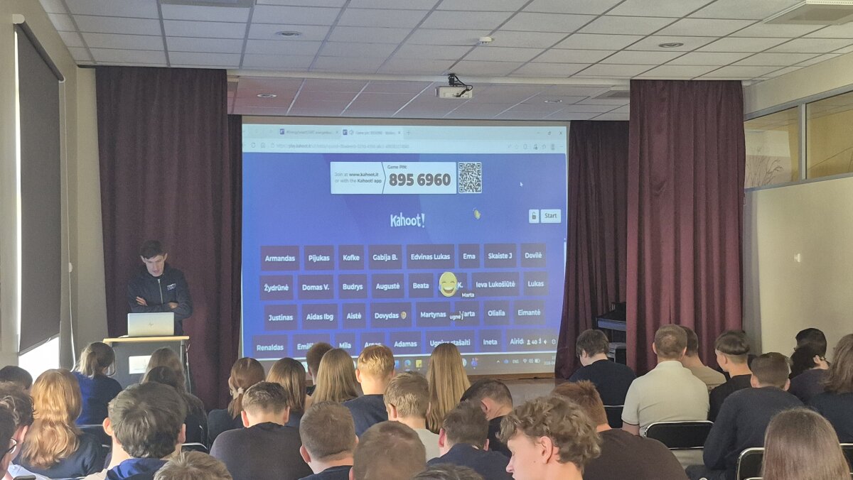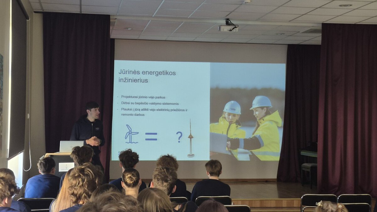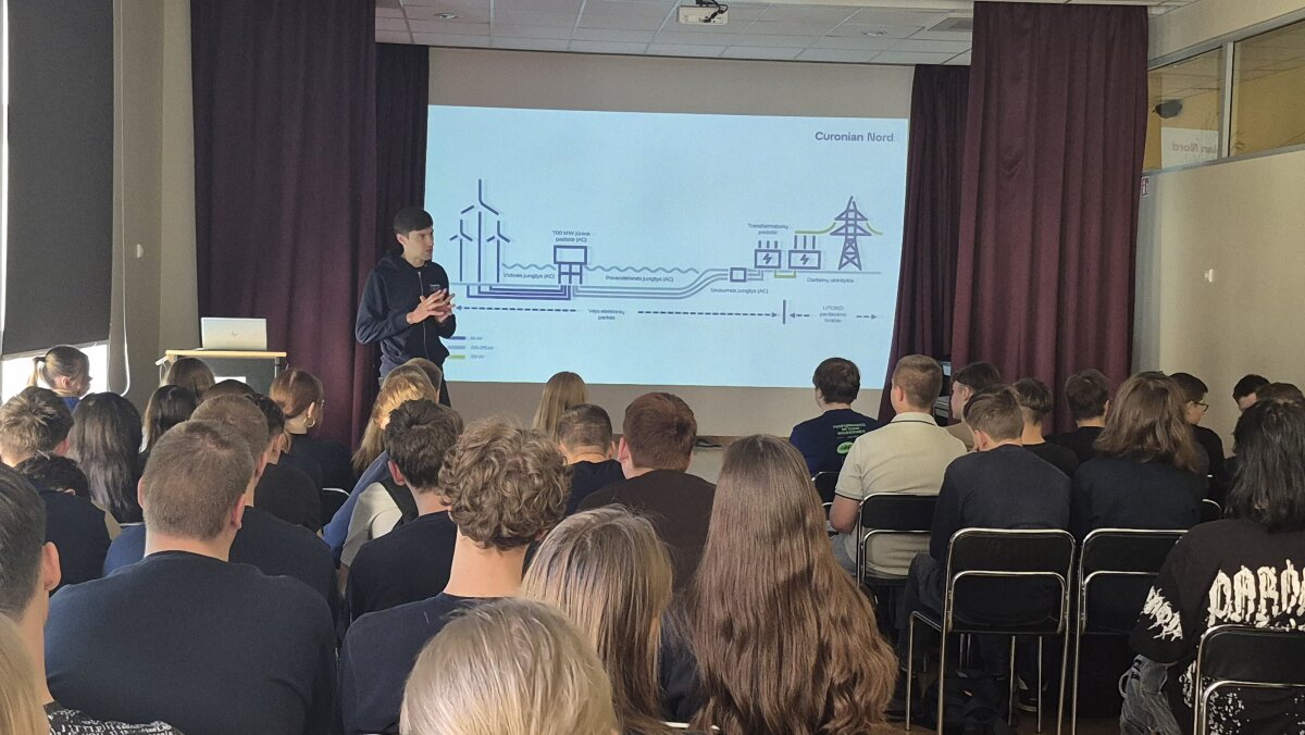 Kitą dieną mokykloje tvyrojo tikra energija – ir ne tik perkeltine prasme. Į susitikimą atvykęs „Ignitis grupės“ komunikacijos koordinatorius Mindaugas Tamošiūnas mokinius supažindino su energetikos pasauliu. Diskusijos apie elektrines, Lietuvos energetikos sistemą ir net būsimo jūrinio vėjo projekto „Curonian Nord“ galimybes įkvėpė ne vieną. O protmūšis „EnergySmartSTART“ sukėlė azartą.