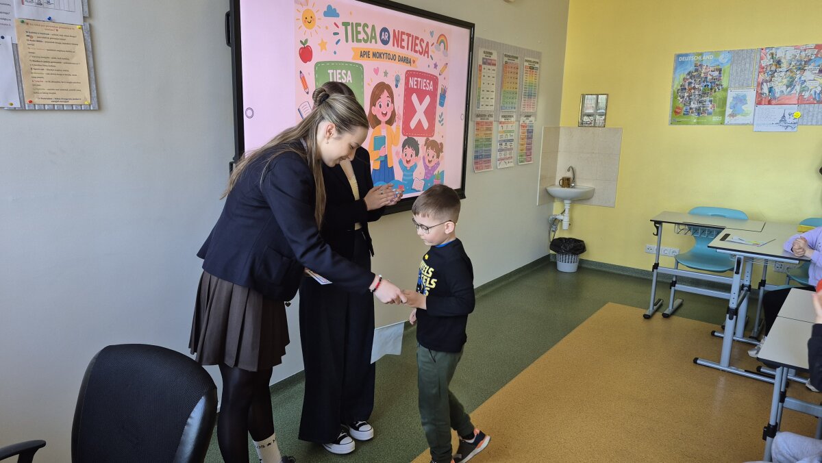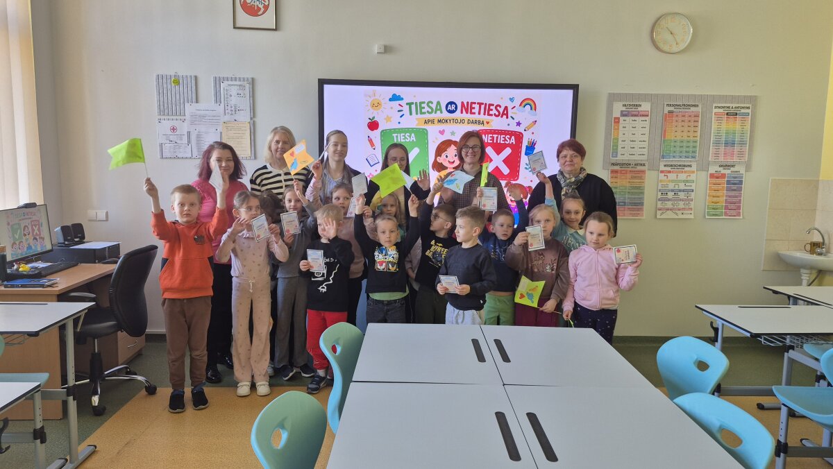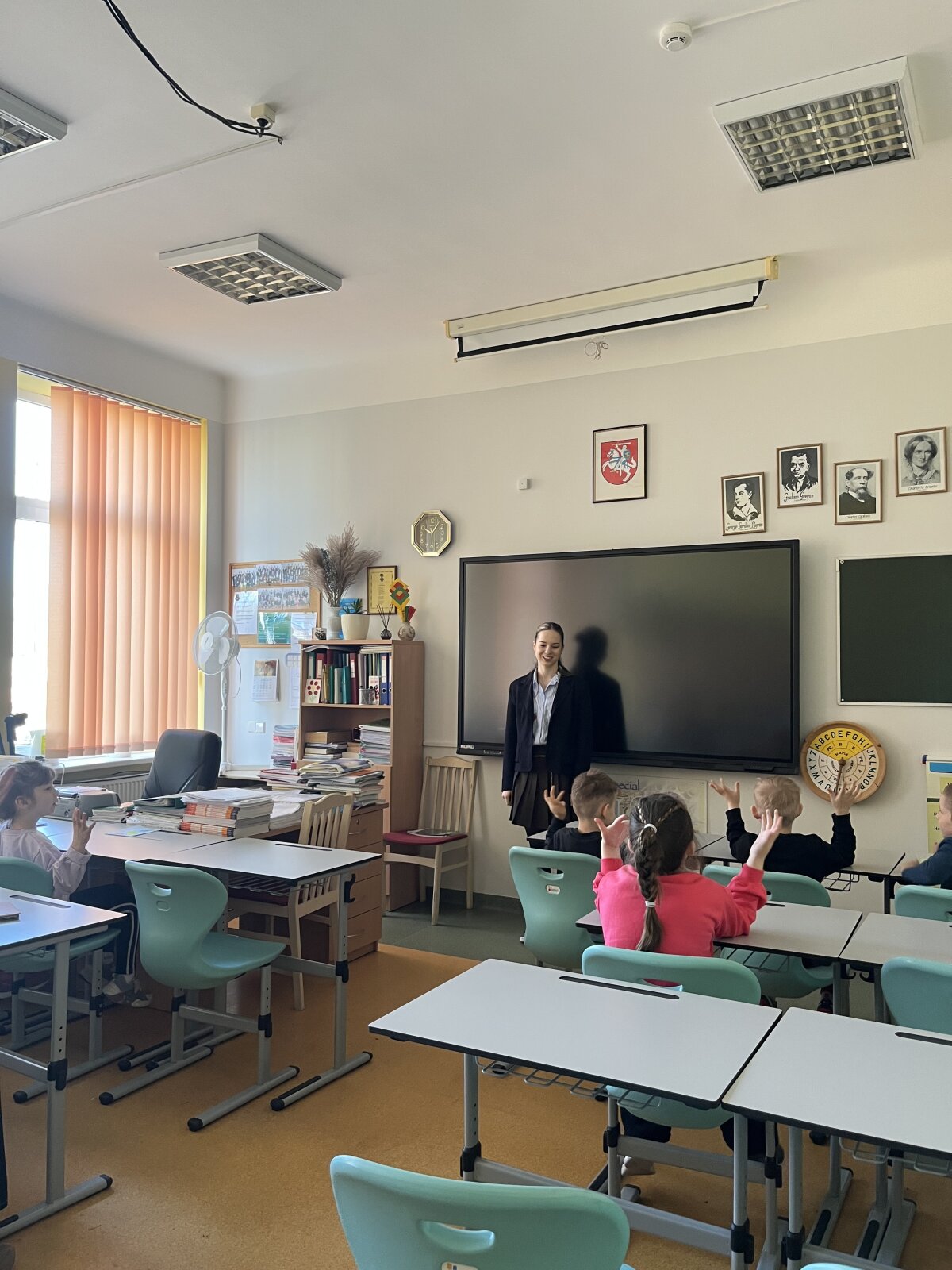 Po to atėjo mūsų eilė – kartu su Urte vedėme veiklas mažiesiems draugams. Paruošėme įvairių žaidimų, susijusių su mokytojo profesija. Vaikai galėjo pasijusti tikrais mokytojais: „mokė“ vieni kitus, sprendė užduotėles, dalyvavo kūrybinėse veiklose.