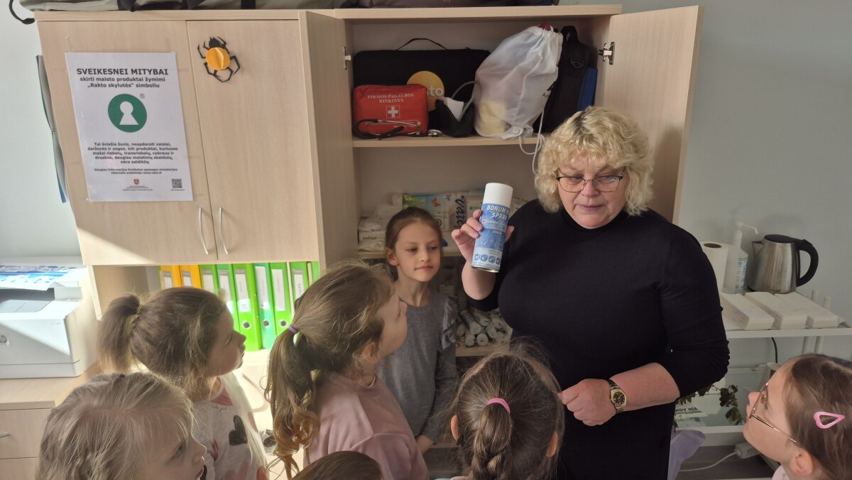 Vėliau mūsų svečiai dalyvavo užsiėmime su gimnazijos sveikatos priežiūros specialiste Virginija. Jo metu jie sužinojo svarbių dalykų apie sveikatą, higieną ir rūpinimąsi savimi.