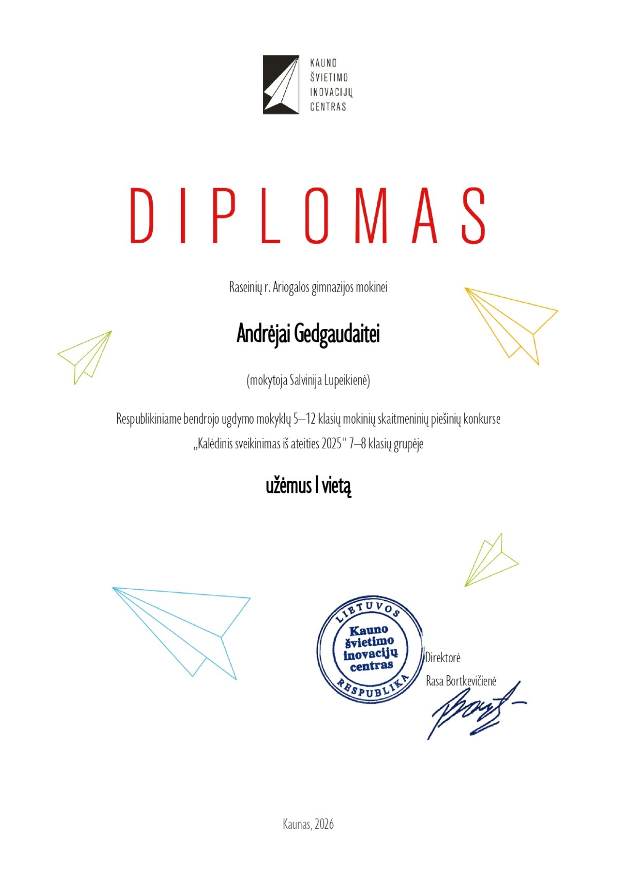 Sveikiname Andrėją su puikiu pasiekimu, o Emilį ir Dovilę – su gražiu mokyklos atstovavimu. Dėkojame visiems dalyvavusiems mokiniams už aktyvumą, kūrybiškumą ir įsitraukimą.