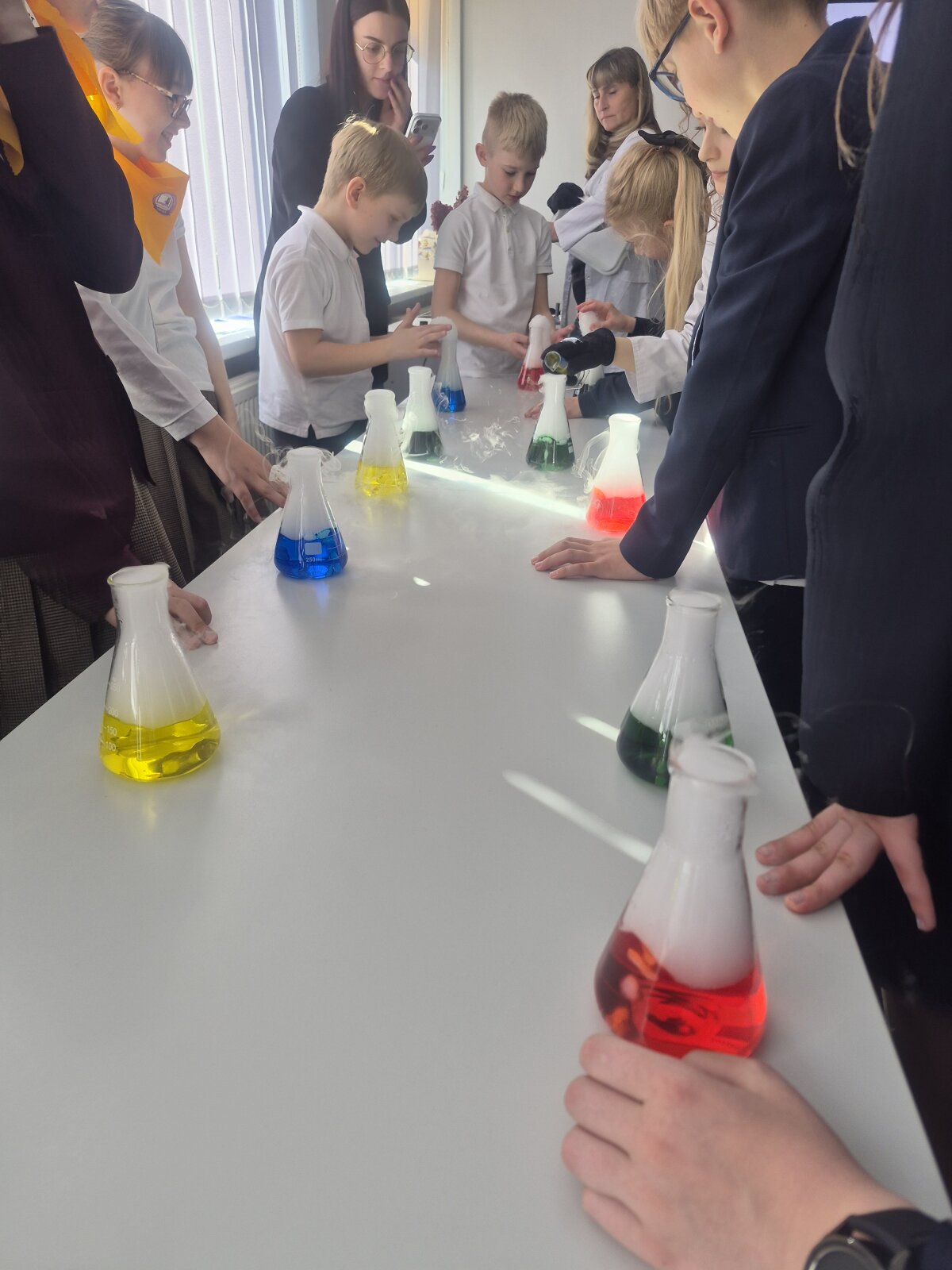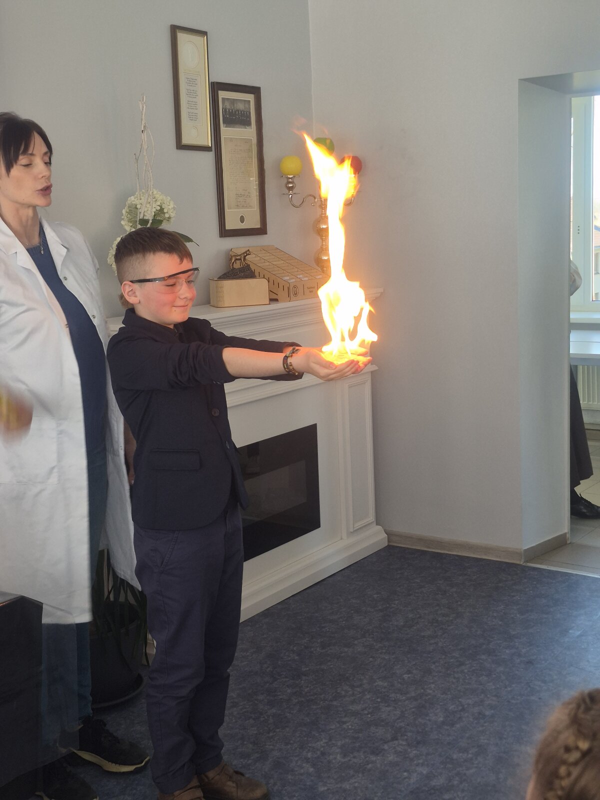 Konferencijos „vinimi“ tapo įvairius cheminius bandymus atliekančio “Mėgintuvėlio“ programa – auditorijoje ir dūmai rūko, ir spalvos keitėsi, o efektingiausia buvo tai, kad mokiniai rankose ugnį laikė. Visi buvo labai įsitraukę, susidomėję ir apstulbę. Organizatoriai, matyt, jau žino, ką pakviesti į svečius ir sukurti kaitinančią atmosferą.