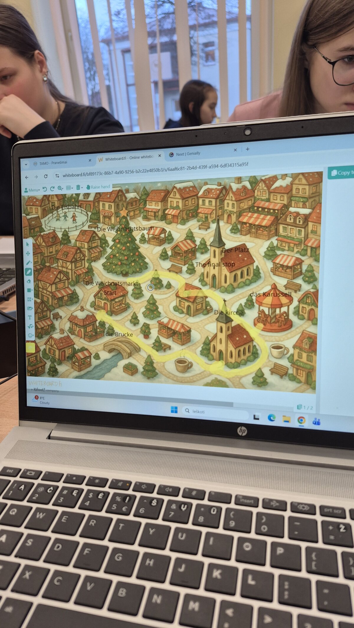 Vėliau mokiniai tyrinėjo skaitmeninį įrodymų stalčių, kūrė hipotezes anglų ir vokiečių kalbomis, braižė dingusio turisto maršrutą kalėdiniame žemėlapyje ir galiausiai pildė detektyvo bylą. O kai visi manė, kad byla jau išaiškinta – QR kodai atskleidė netikėtą dingusio turisto kalėdinę žinutę.