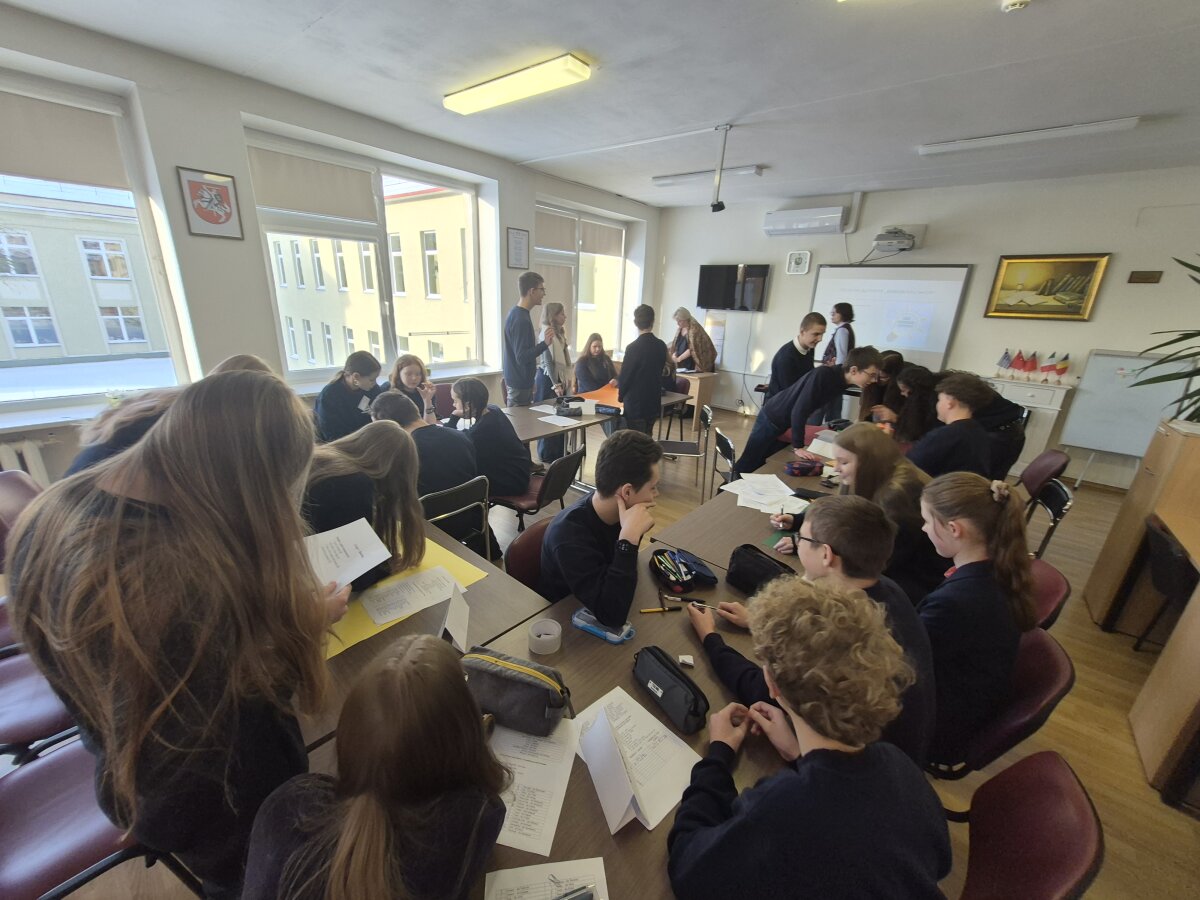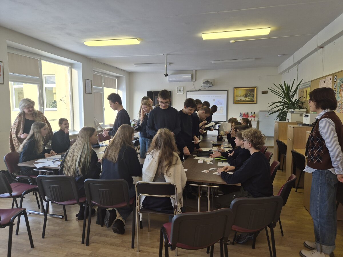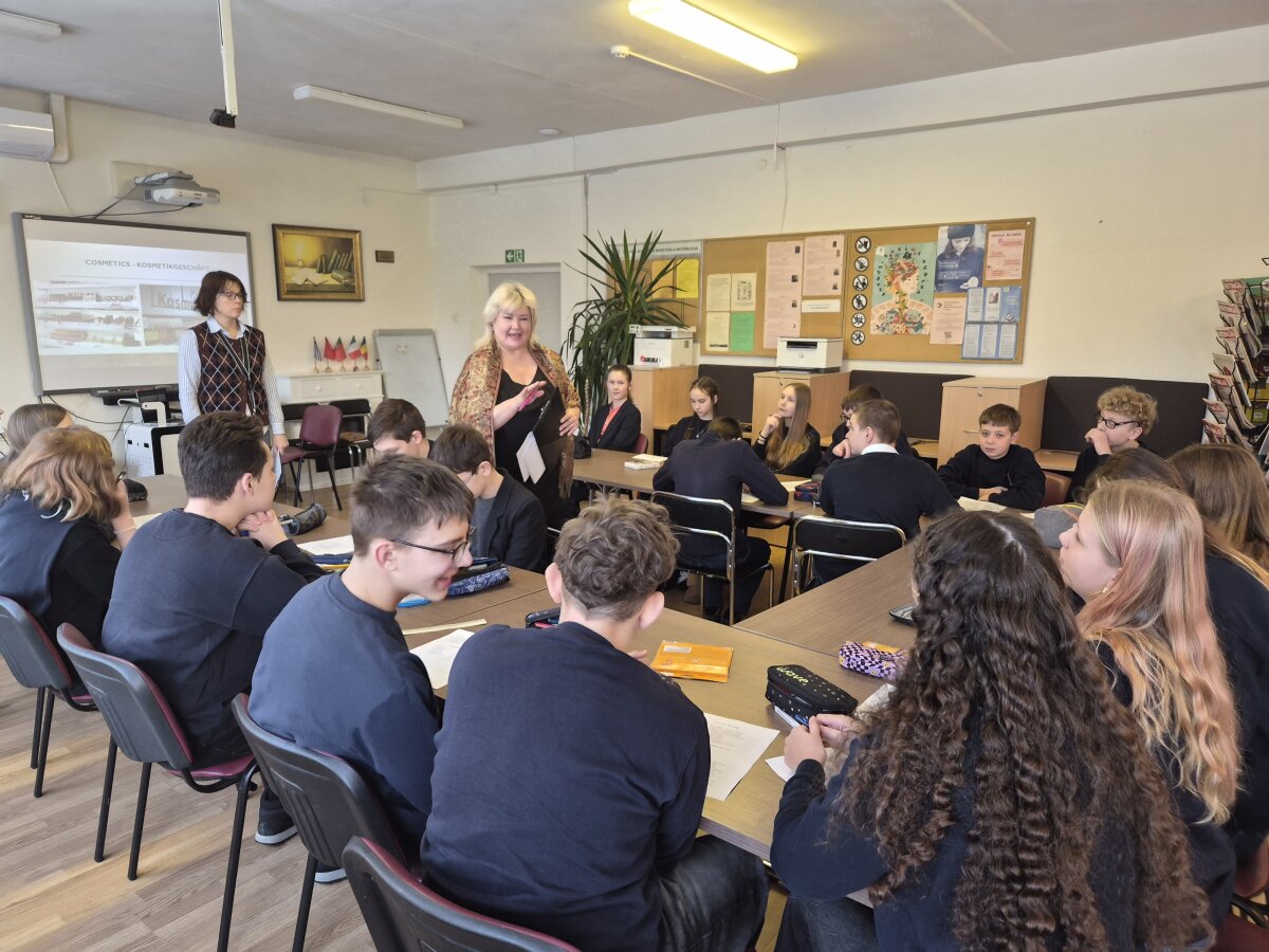 2026-01-19 dieną anglų kalbos mokytoja metodininkė Dalia Skeberdienė ir vokiečių kalbos vyresnioji mokytoja Ramunė Aksomaitienė vedė 7 klasėje integruotą anglų/vokiečių kalbų pamoką „Parduotuvėje“ ( In the shop).
